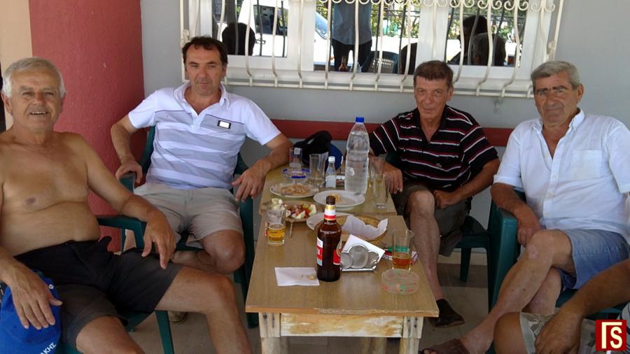 Οι διοργανωτές απολαμβάνουν, μετά τα γίδια, τσίπουρο και παγωμένη μπύρα στο καφενείο του Μπουκουβάλα.